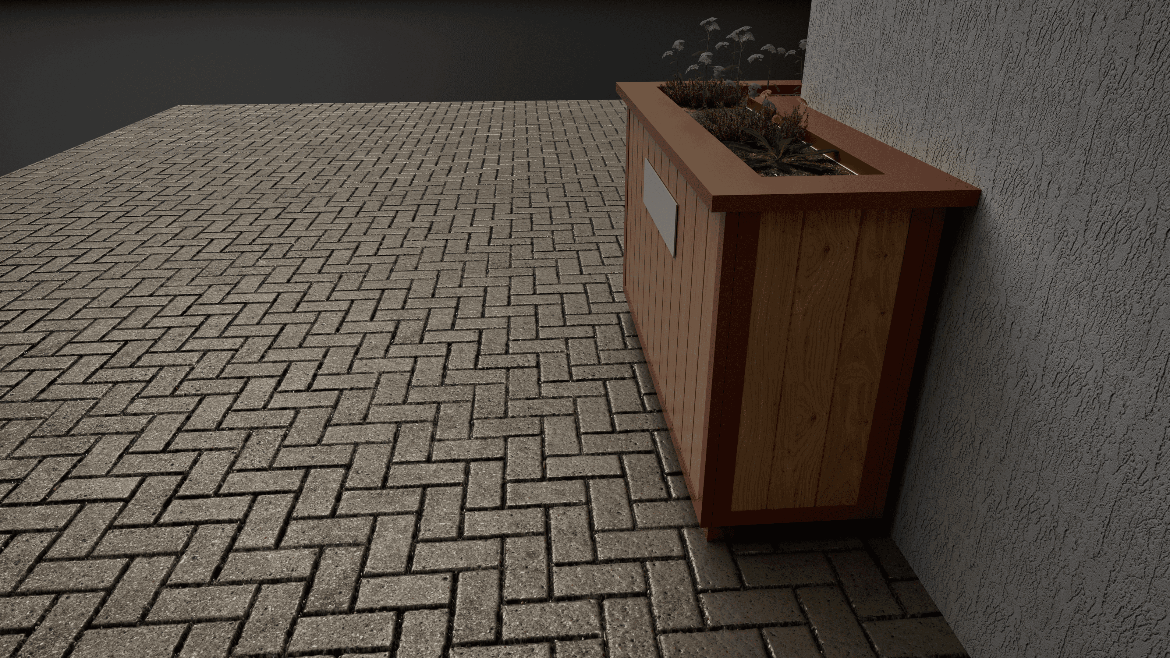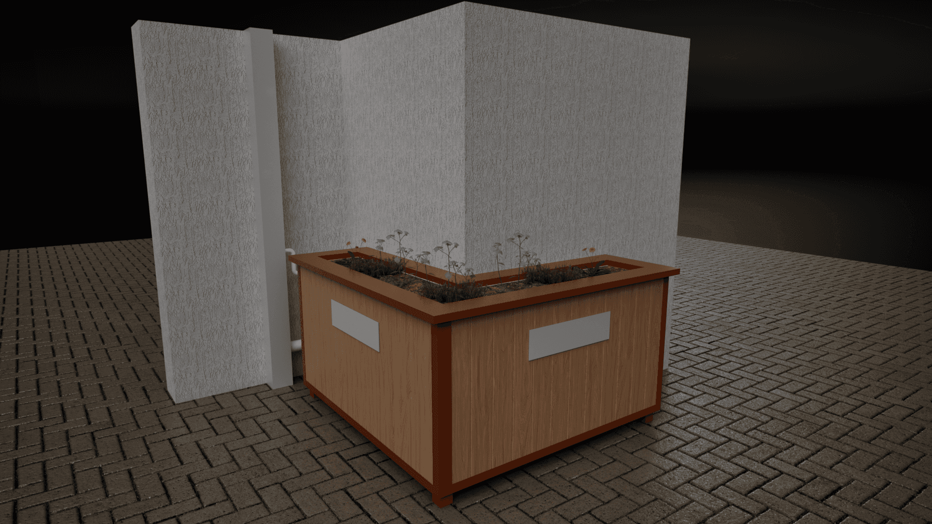 Projekt obejmował opracowanie modułowych donic typu Eco Planter — elementów architektury zewnętrznej łączących funkcję dekoracyjną z ekologiczną.