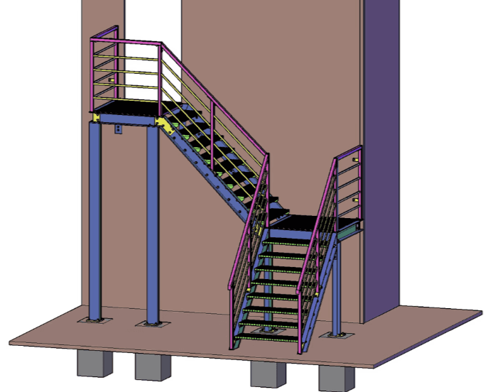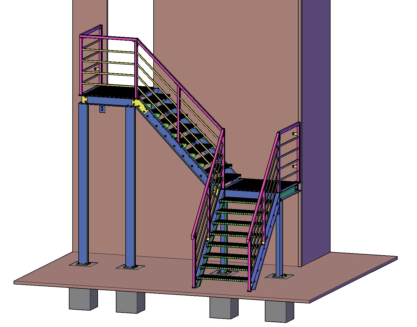 Klient LEWLEX potrzebował precyzyjnej dokumentacji warsztatowej schodów stalowych do zewnętrznej instalacji przemysłowej.