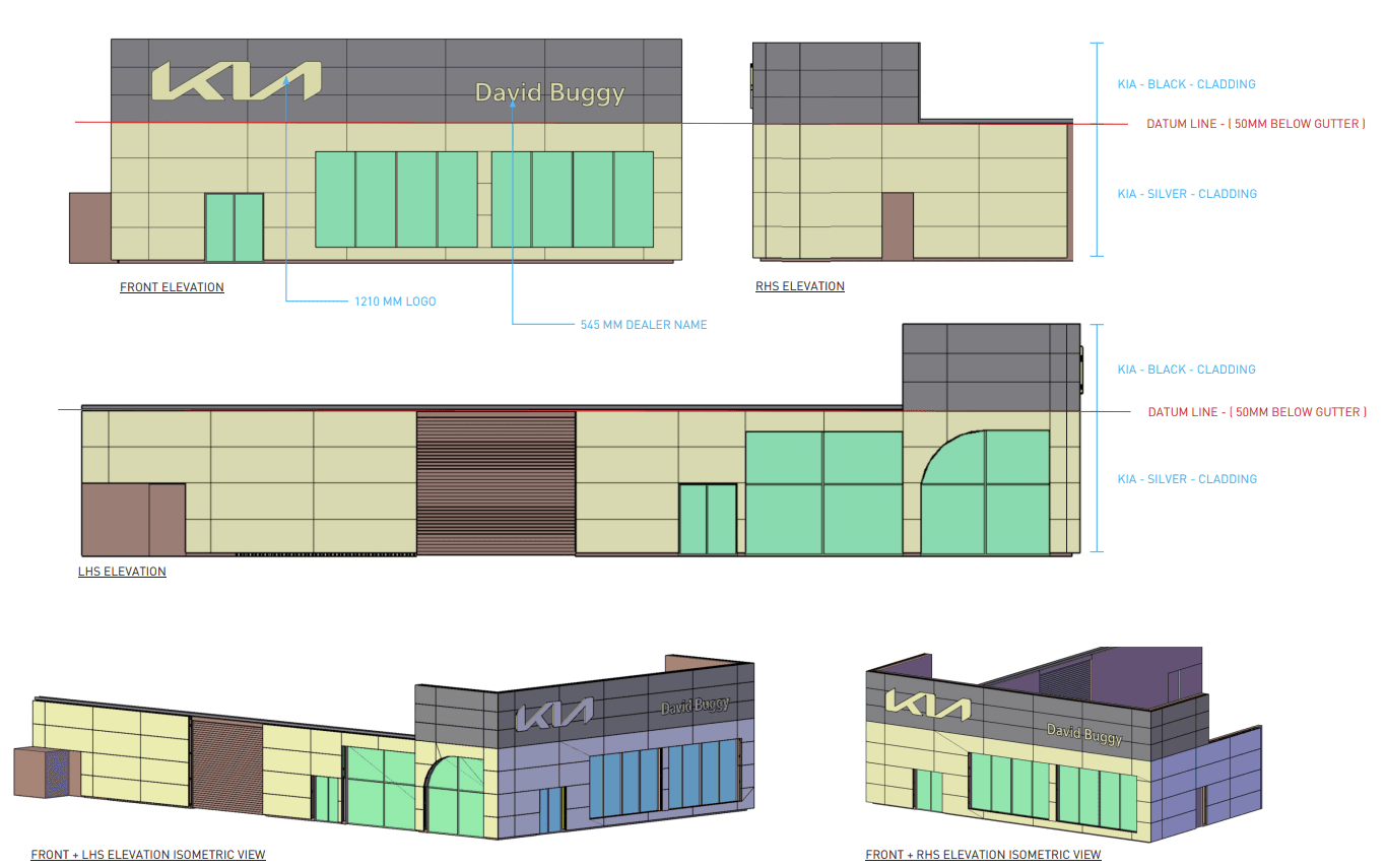 Projekt dotyczył opracowania kompletnego rozwiązania elewacyjnego dla obiektu z sektora automotive.